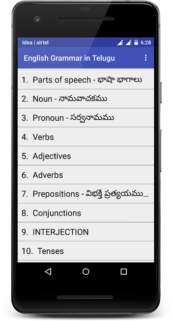 قواعد اللغة الإنجليزية بالتيلجو هو تطبيق مجاني لنظام الأندرويد تم تطويره بواسطة بابو سري رامولو. يندرج تحت فئة الاجتماع والاتصال ويهدف إلى توفير فهم شامل لقواعد اللغة الإنجليزية باللغة التيلجو.